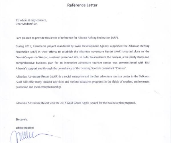 - Selected “Success Story" by USAID, for sustainable product rafting in Albania