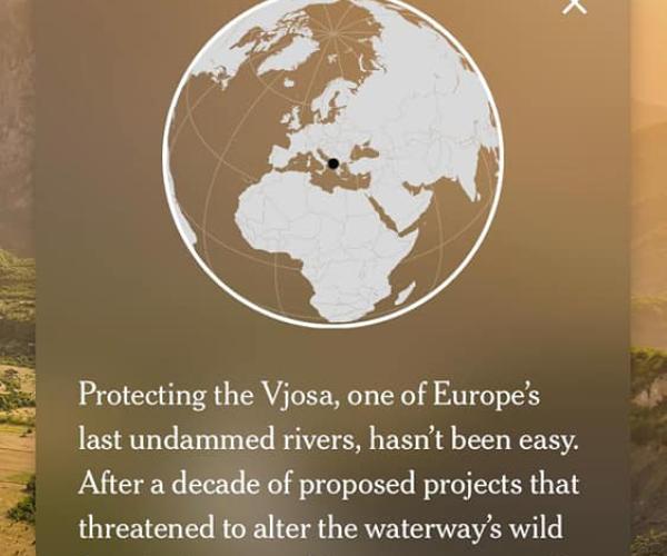 In the description that the NYT makes of Vjosa, it cites the project "To protect Vjosa" after the decision taken by the Albanian government to build a HPP along the river. The movement was also echoed in foreign media, and even Leo Di Caprio was among those who called on the government to stop the destruction of the river. The Vjosa River is the last wild river in Europe and there is no one like it in Europe.
