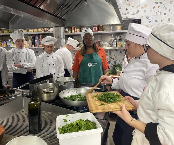 Tetori është muaji i vjeljes dhe nxjerrjes së vajit të ullirit, ndaj nxënësit e shkollës së Beratit së bashku me shefin e kuzhinës shkuan për të mbledhur ullinjtë dhe së bashku ndoqën prodhimin e vajit të ri ne fabrikën e vajit në fshatin Drobonik.Me atë vaj dhe produkte të tjera të freskëta të stinës, ata gatuan ushqime tradicionale të teksasit dhe shqiptare në kuzhinën komode të Hotel Castle Park Berat , shtëpia e Slow Food Berat. Kuzhina, si element bashkimi mes popujve, ka shërbyer për të bashkuar shijet dhe historitë e rëndësishme. Kungulli i pjekur i shef Derrit u vendos pranë byrekut të kungullit të studentëve. Dhe bërxollat e qengjit të shefit garuan për primatin me “Tavë kosin” me qengjin e shef Musliakës. Përvoja ishte e fortë dhe emocionuese për të gjithë të pranishmit.