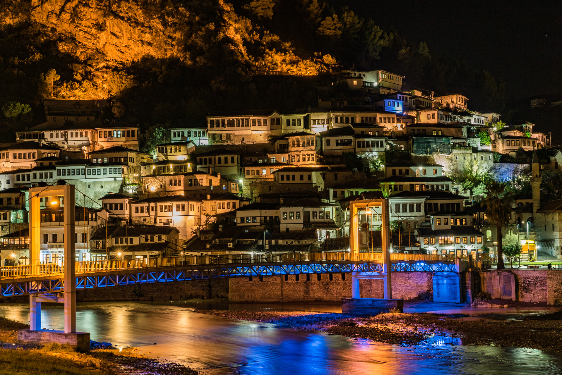 These two historic neighbourhoods lie on opposite banks of the Osum River. Mangalem, with its cascading white houses and countless windows, earned Berat its iconic nickname. Across the Gorica Bridge (built in 1780 with seven graceful arches), you’ll find equally charming cobbled streets, little churches and riverside views that come alive at sunset.